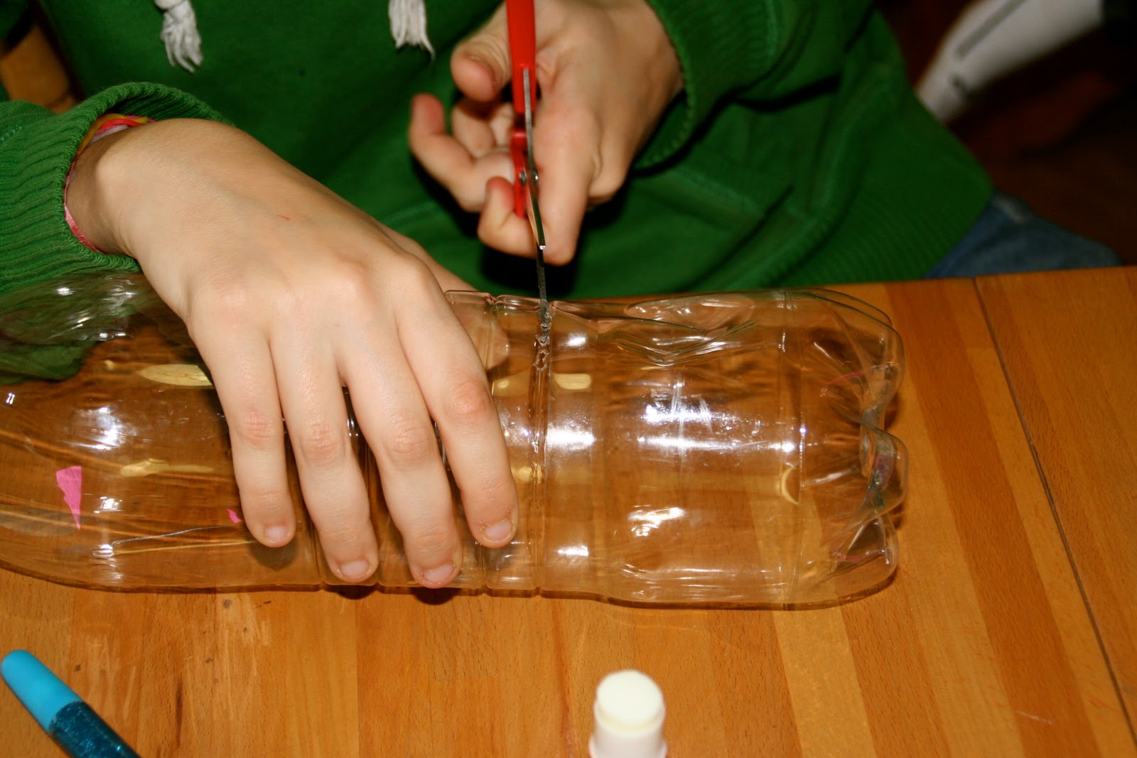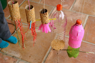 no topo prendam um fio para pendurarem o bird feeder (à volta do gargalo ou um furo de um lado ao outro)