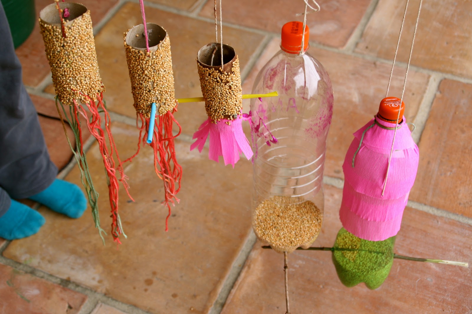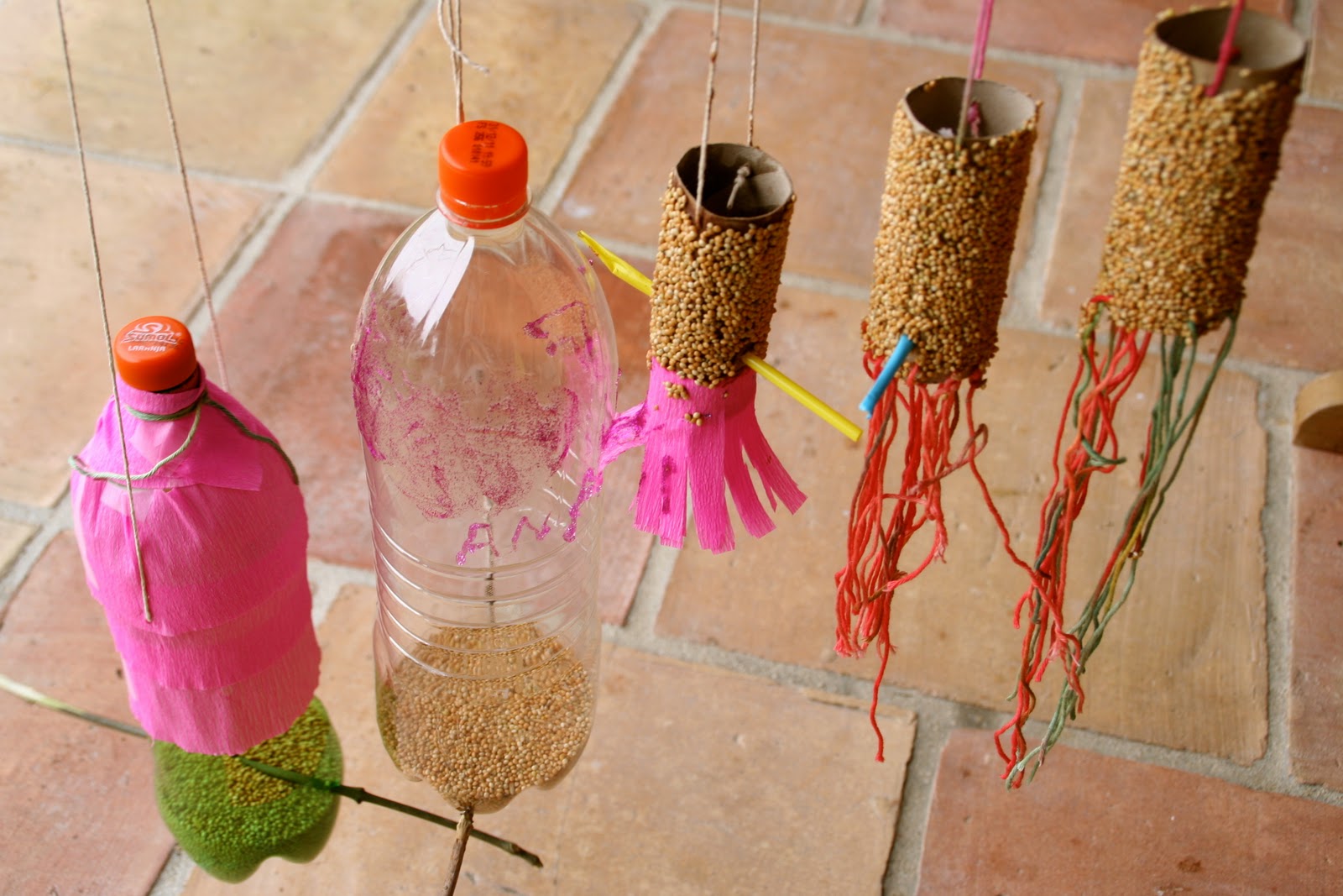 se quiserem um bird feeder mais resistente aos elementos, utilizem uma garrafa de plástico de 1,5 l .